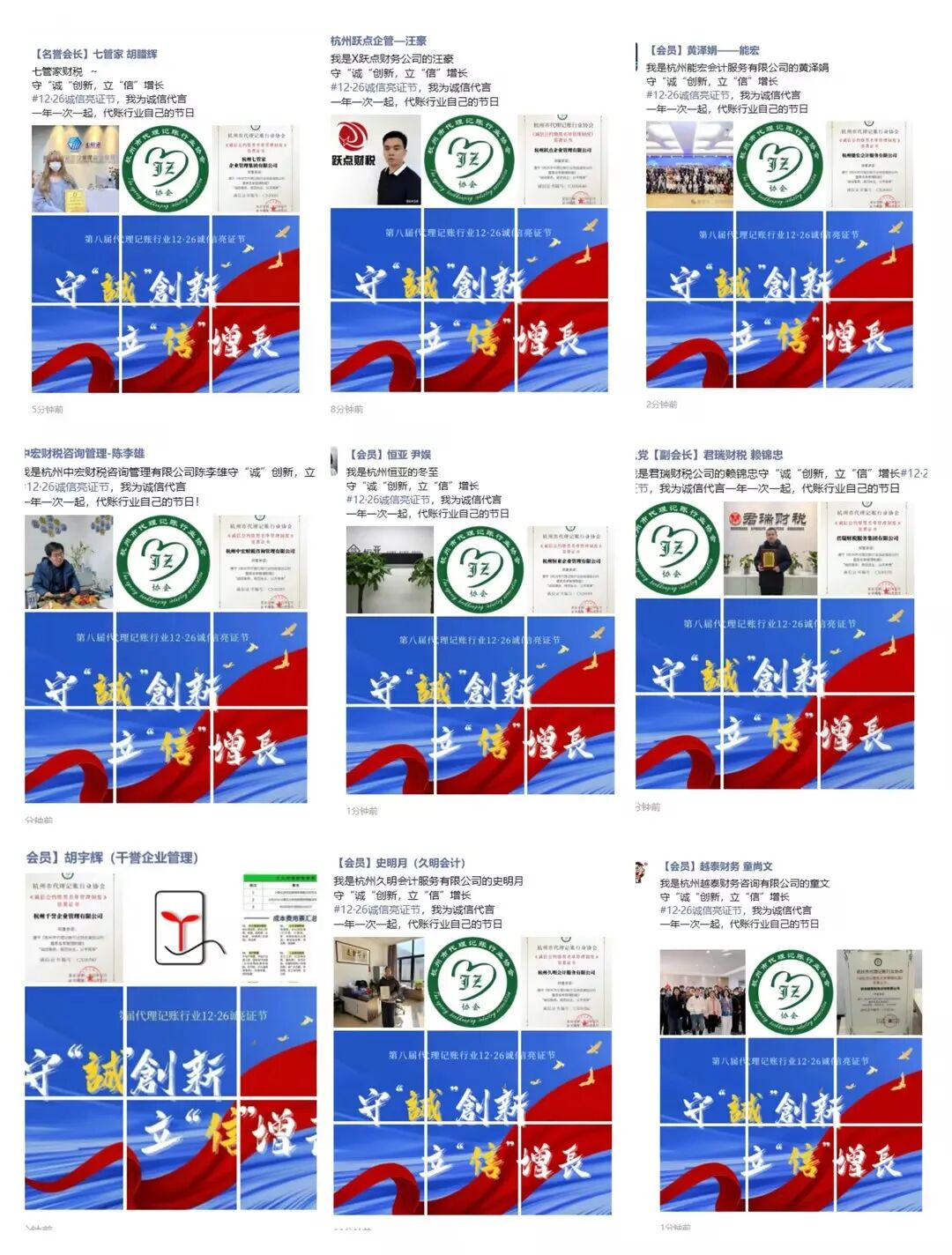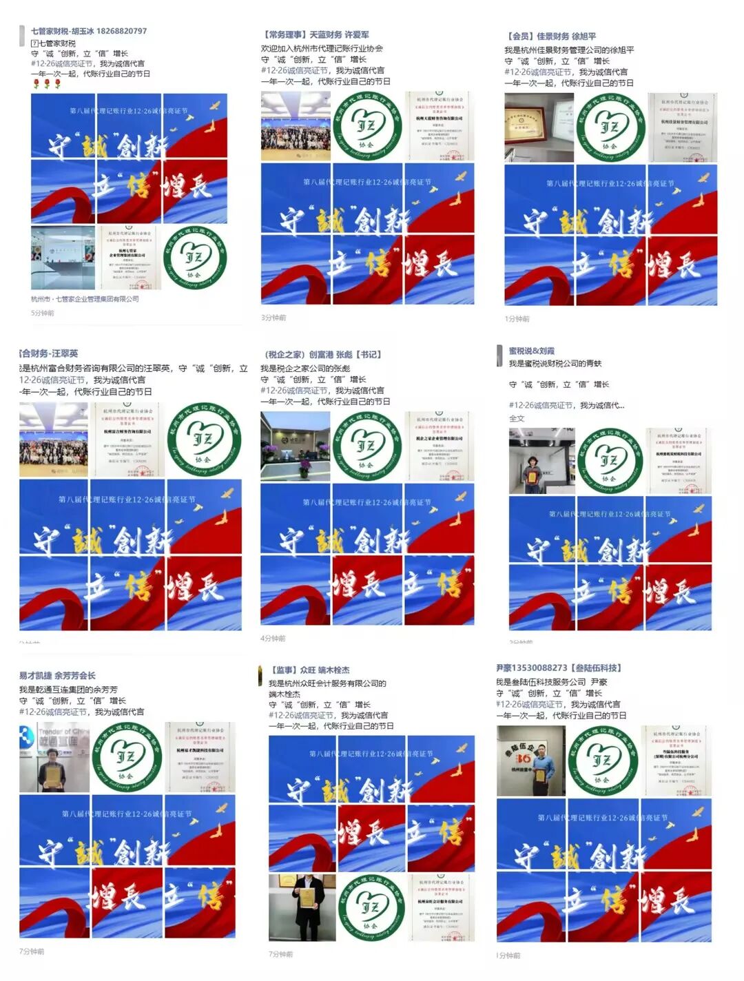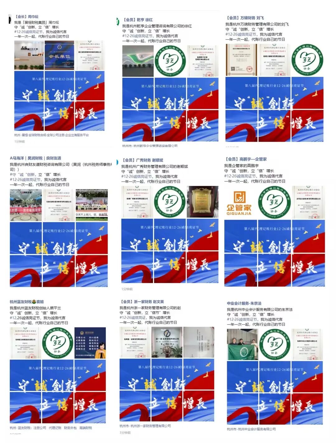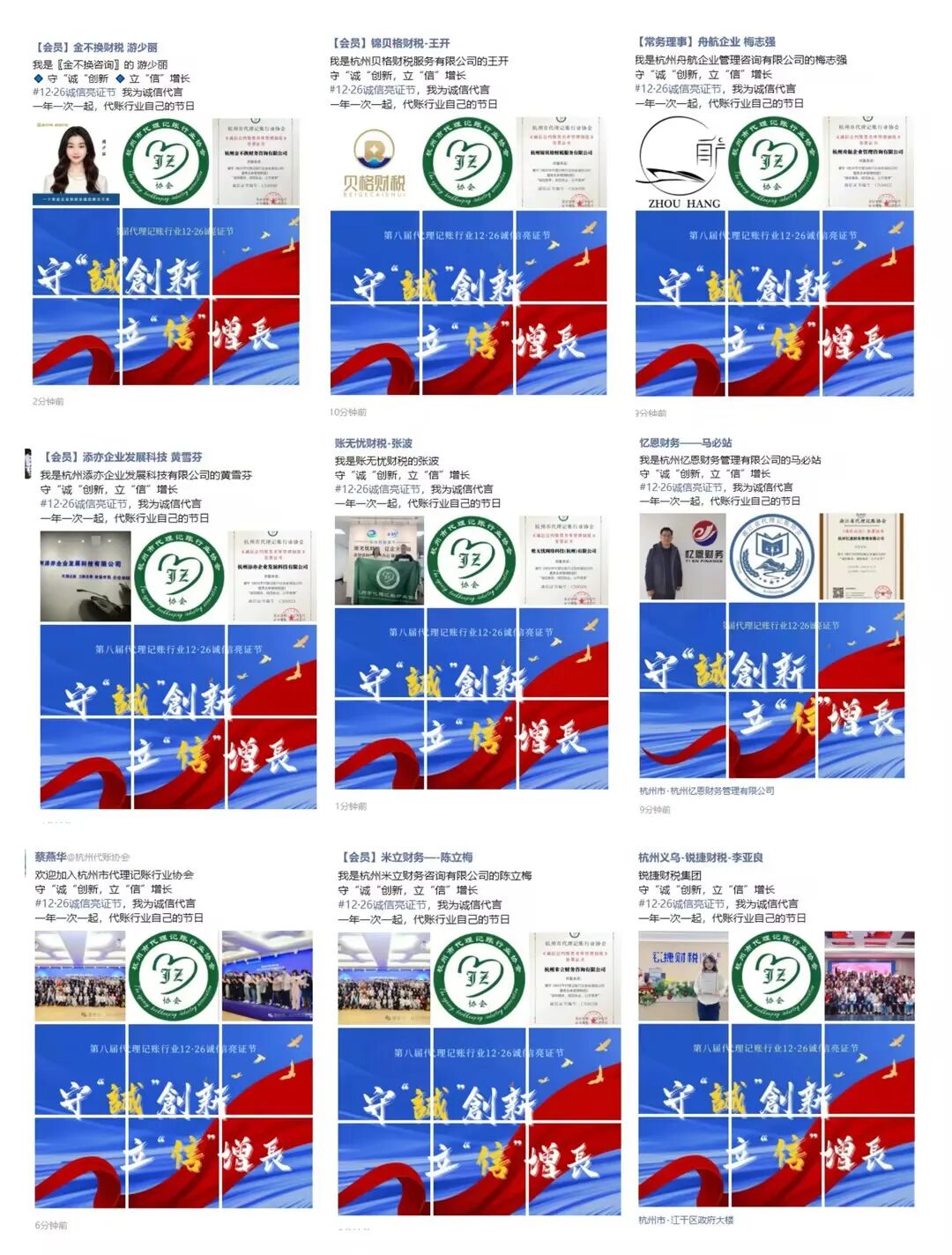 杭州市代理记账行业协会“12·26诚信亮证”行动部分展示