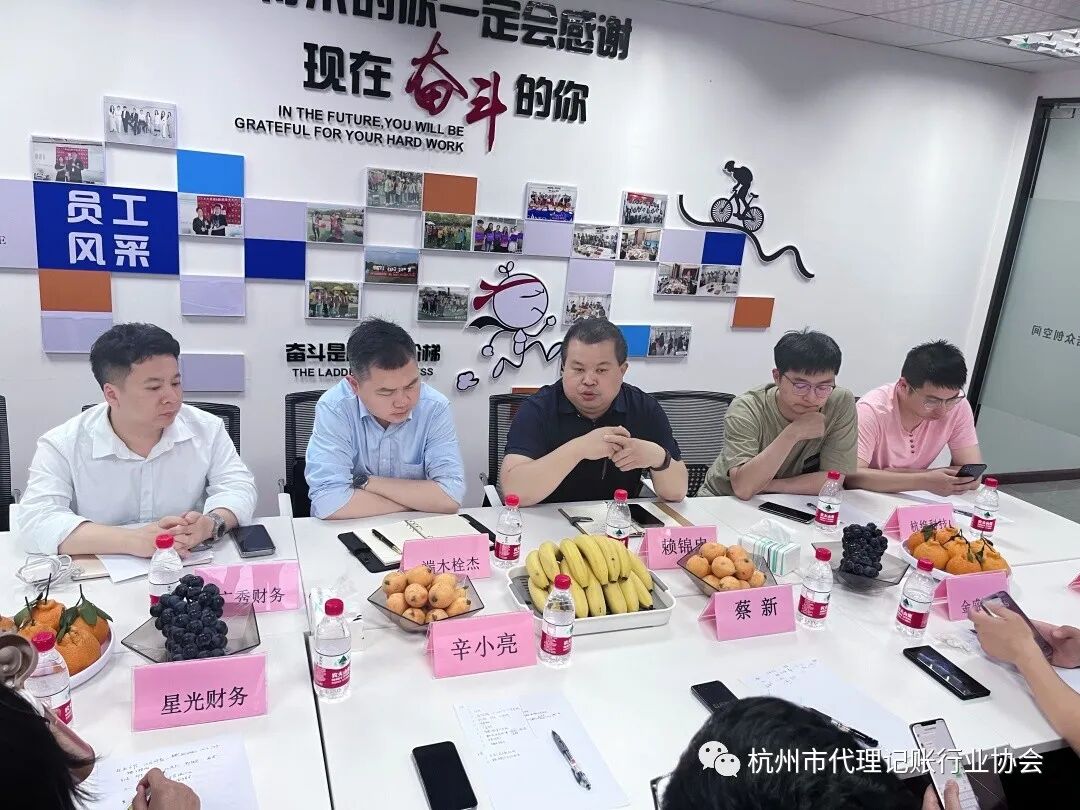5月17日下午,杭州市代理记账行业协会会员走访交流会在杭州鼎诺财务管理有限公司召开,常务副会长赖锦忠,监事端木栓杰,理事蔡新、辛小亮,执行秘书长蔡燕华及会员单位:广秀财务谢顺斌 、星光财务方巧青、金盛财税王明、恒亚企管尹娱、杭绉科技舒海洋及秘书处参加。