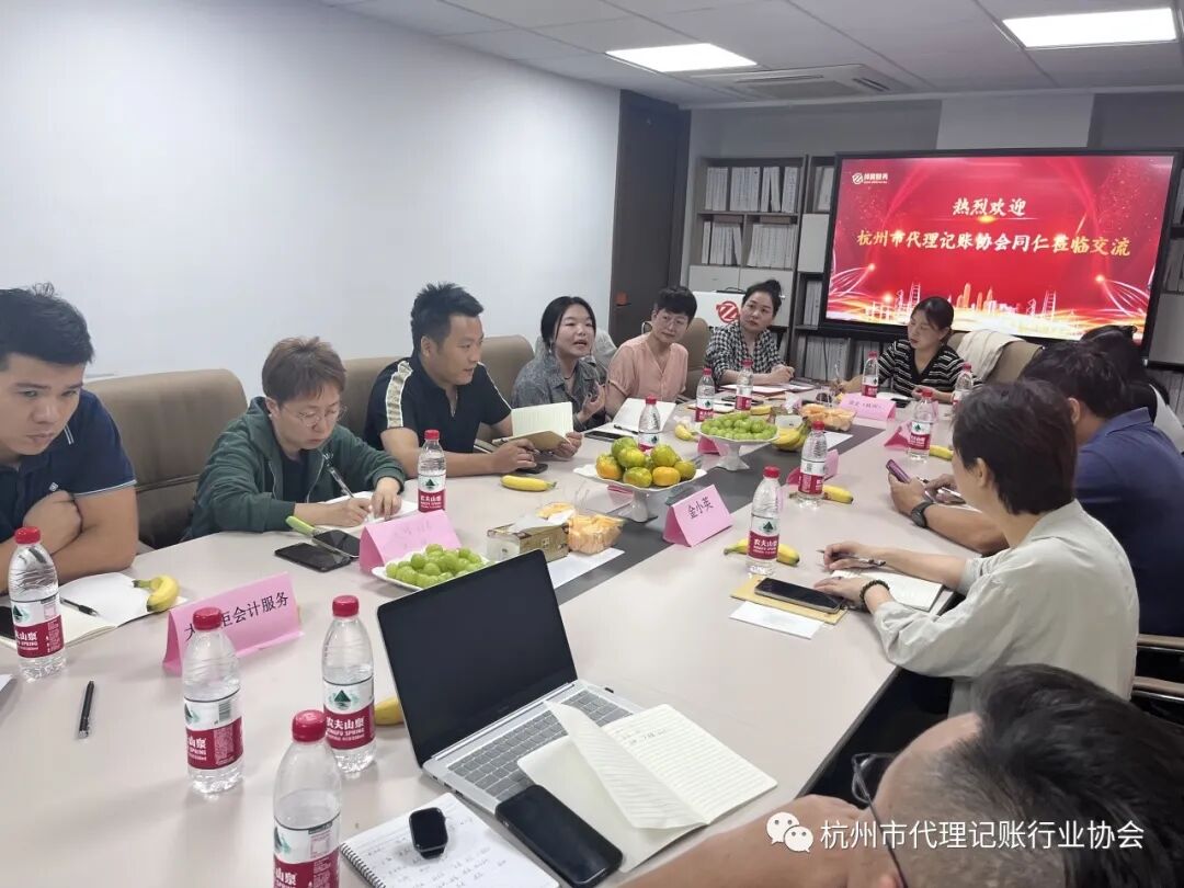 8月31日下午,杭州市代理记账行业协会会员走访交流会在理事单位杭州纯真财务咨询有限公司召开,副会长金小英、石立,名誉副会长王林科、理事田璐、廖雪平,监事长单位天隆财务及会员单位:华奕财务高婷婷、爱企(杭州)周迎松、羽联信息吴静静、金腾财务吴燕瑾、大掌柜会计服务有限公司及秘书处参加。