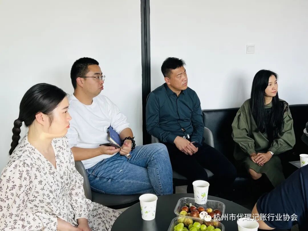 10月31日下午,杭州市代理记账行业协会会员走访交流会在会员单位杭州掌格财务管理咨询有限公司召开,常务副会长赖锦忠、副会长金小英,理事许爱军、郭鹏、王春娟、熊礼彬,及会员掌格财务李亮、叁陆伍(杭州)财务陈东及秘书处参加。