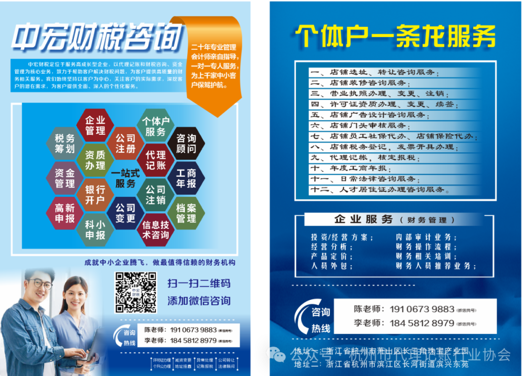 亮点服务:1.个体户一条龙服务;2.企业服务(财务管理)。