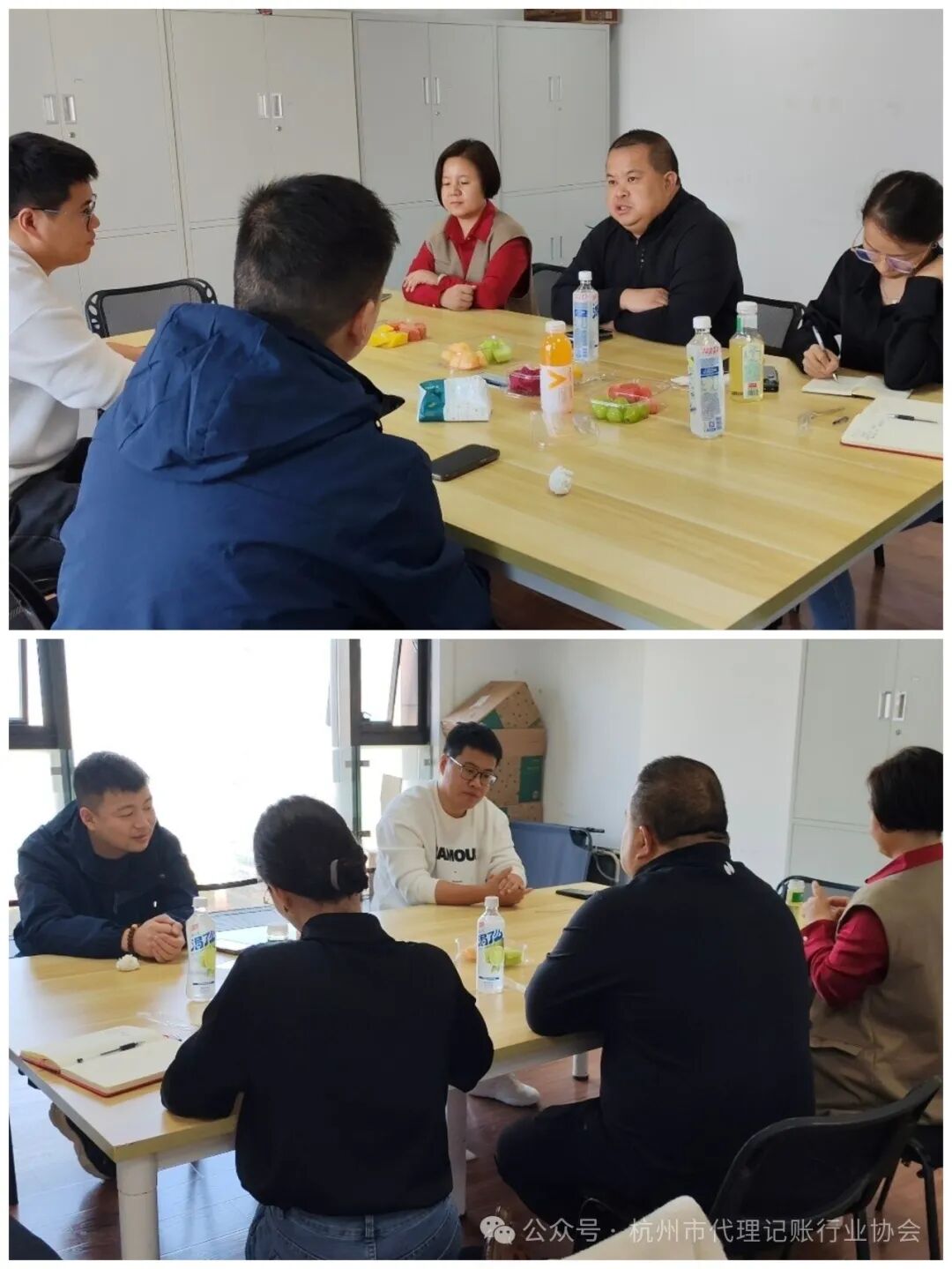 第二站来到杭州天算财务管理有限公司。天算财务的杨总、李总首先对杭代协一行的到访表示热烈欢迎,并对自家公司的经营业务、发展规划做了介绍。大家对企业转型方向、发展高端业务、如何应对市场竞争等内容展开深入探讨。