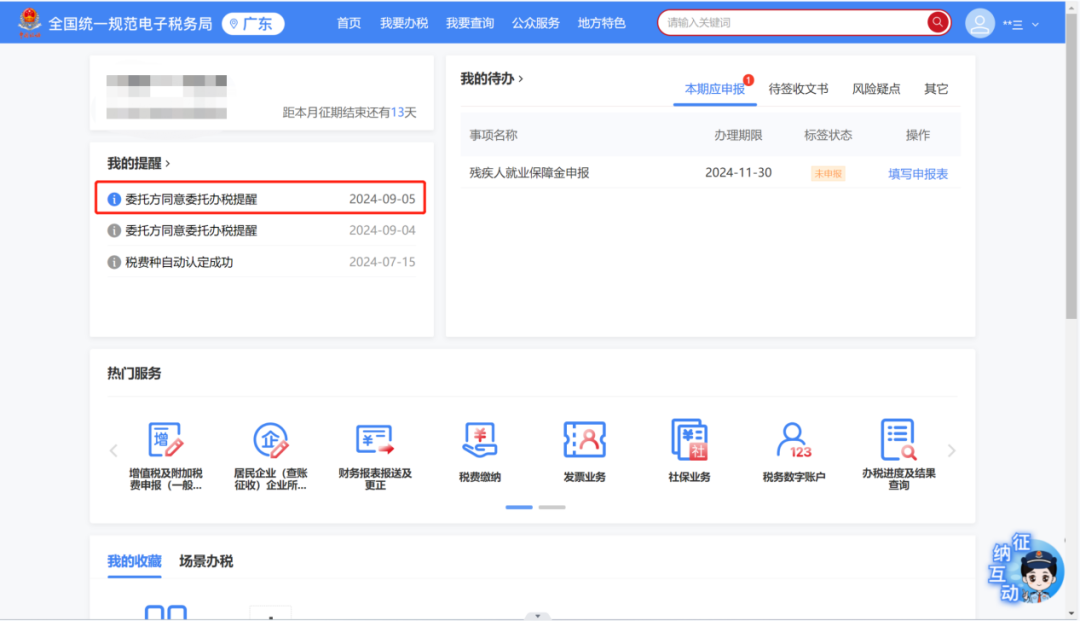 如涉税专业服务机构已完成上述操作,并确保采集的协议要素真实有效的前提下,即可以使用电子税务局“代理业务”通道,选择“代理业务”以税务代理人的身份登录电子税务局办税。
