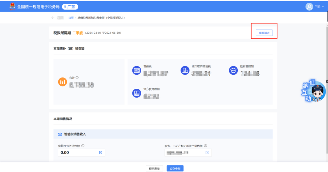 4)点击“增值税及附加费申报”即可进行增值税的申报。