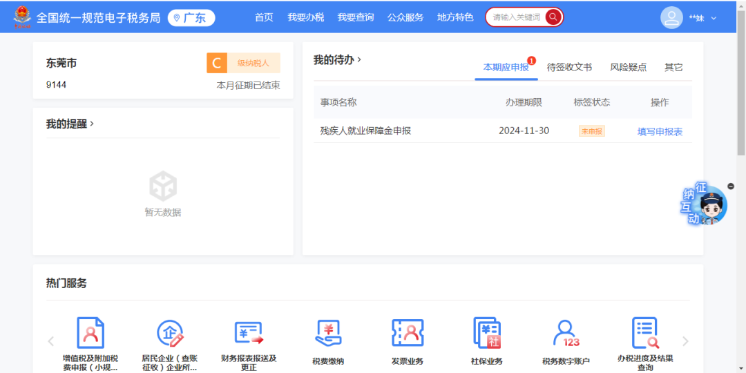 3)选定委托企业后点击“进入”,跳转至该企业的办税桌面,中介机构可根据被代理企业的需求进行代理业务操作。