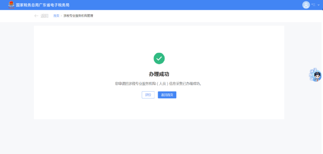 5)采集成功后,如服务项目中包含“纳税申报代理”或“其他税务事项代理”的,需要委托方登录电子税务进行确认。